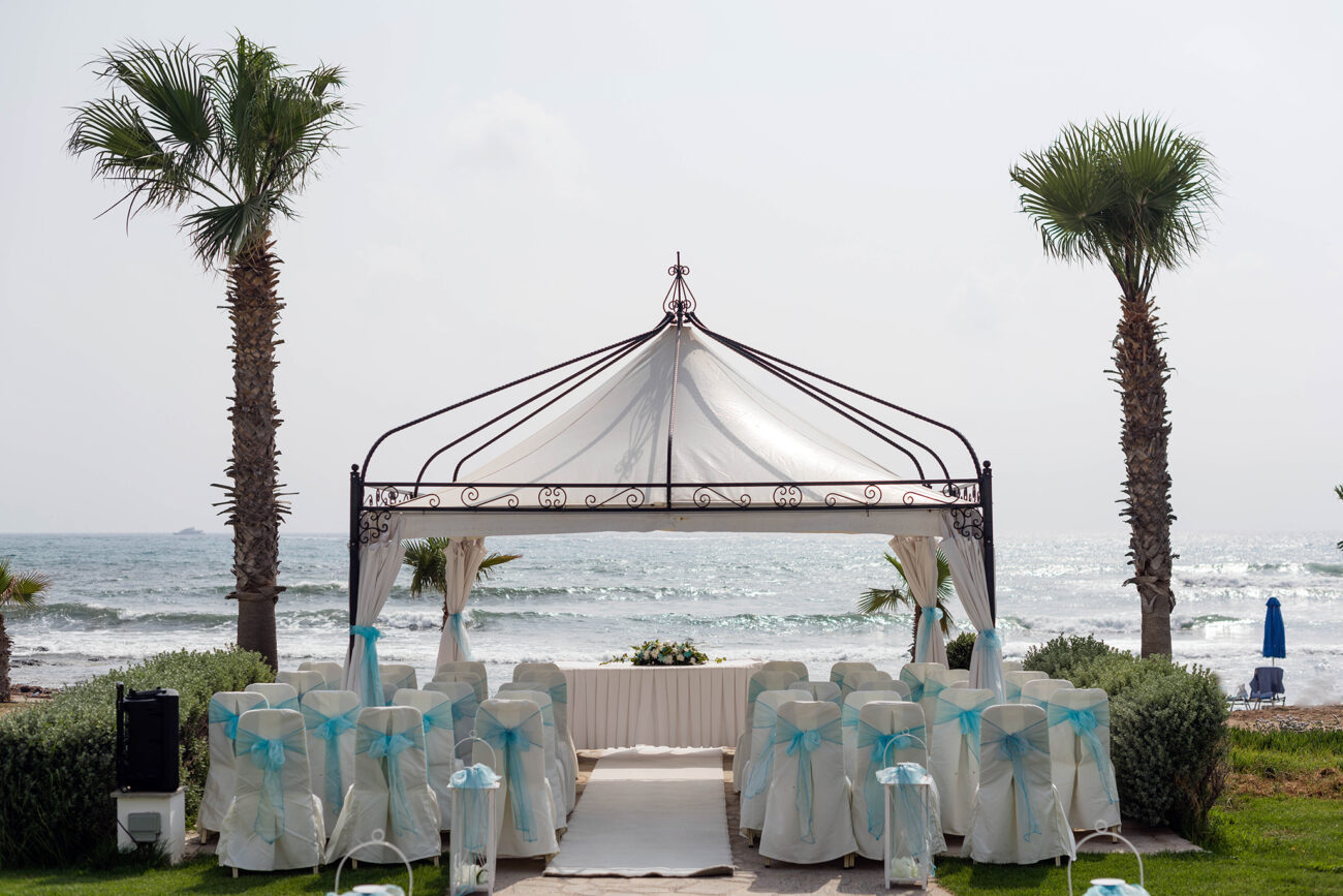 Aphrodite Beach Gazebo is an idyllic venue for couples looking to exchange their vows surrounded by the breathtaking beauty of the Paphos coast. With its stunning view of the sparkling ocean and the iconic Paphos Lighthouse, the venue is a true embodiment of the romance and magic of a beach wedding. Perfect for intimate ceremonies, the gazebo is semi-private, accommodating up to 50 guests, and is only a stone’s throw away from the sand.